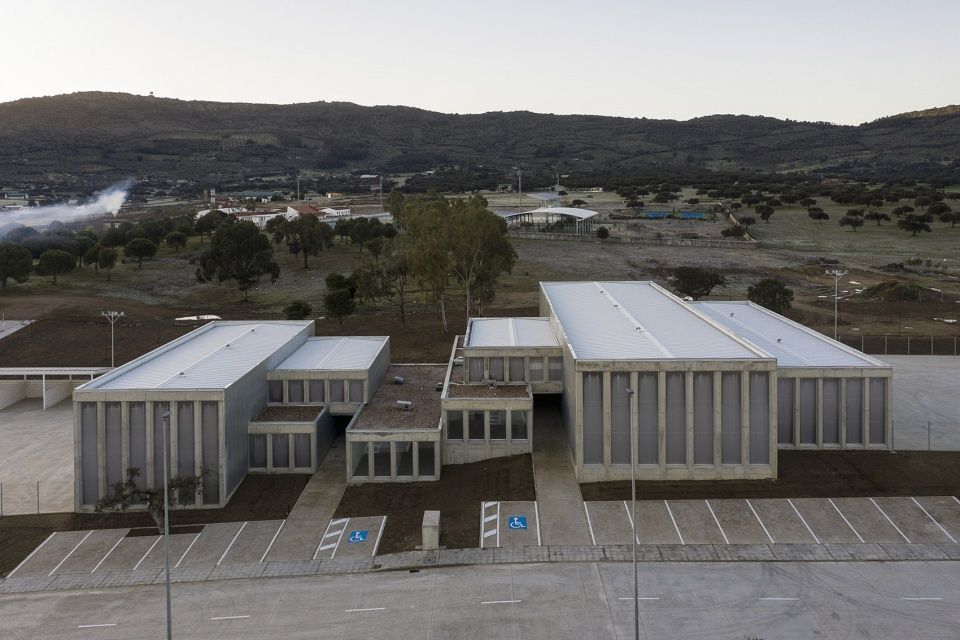 يربط مبنى التدريس في المدرسة الابتدائية مناطق التدريس المختلفة معًا من خلال ممر طويل.